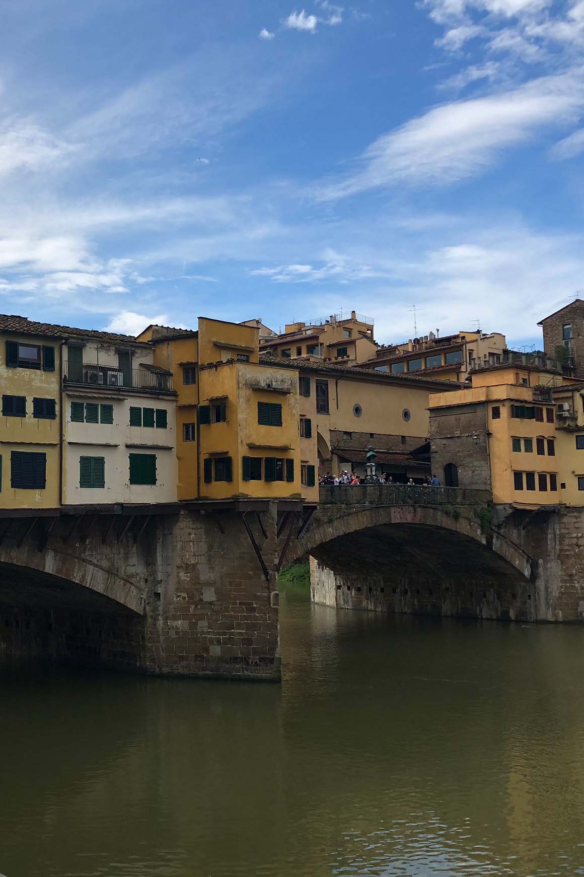 The first day we just stroll around central Florence there is so much to see and do. Since we were too close we started our day passing by Ponte Vecchio, this medieval bridge with 3-Arch pillars and shops in the top (mostly jewelry shops) and is one of the most famous bridges in the world. It is believed was built for the first time in 996 by the romans. However, it was destroyed by floods and then rebuilt at least two times more.