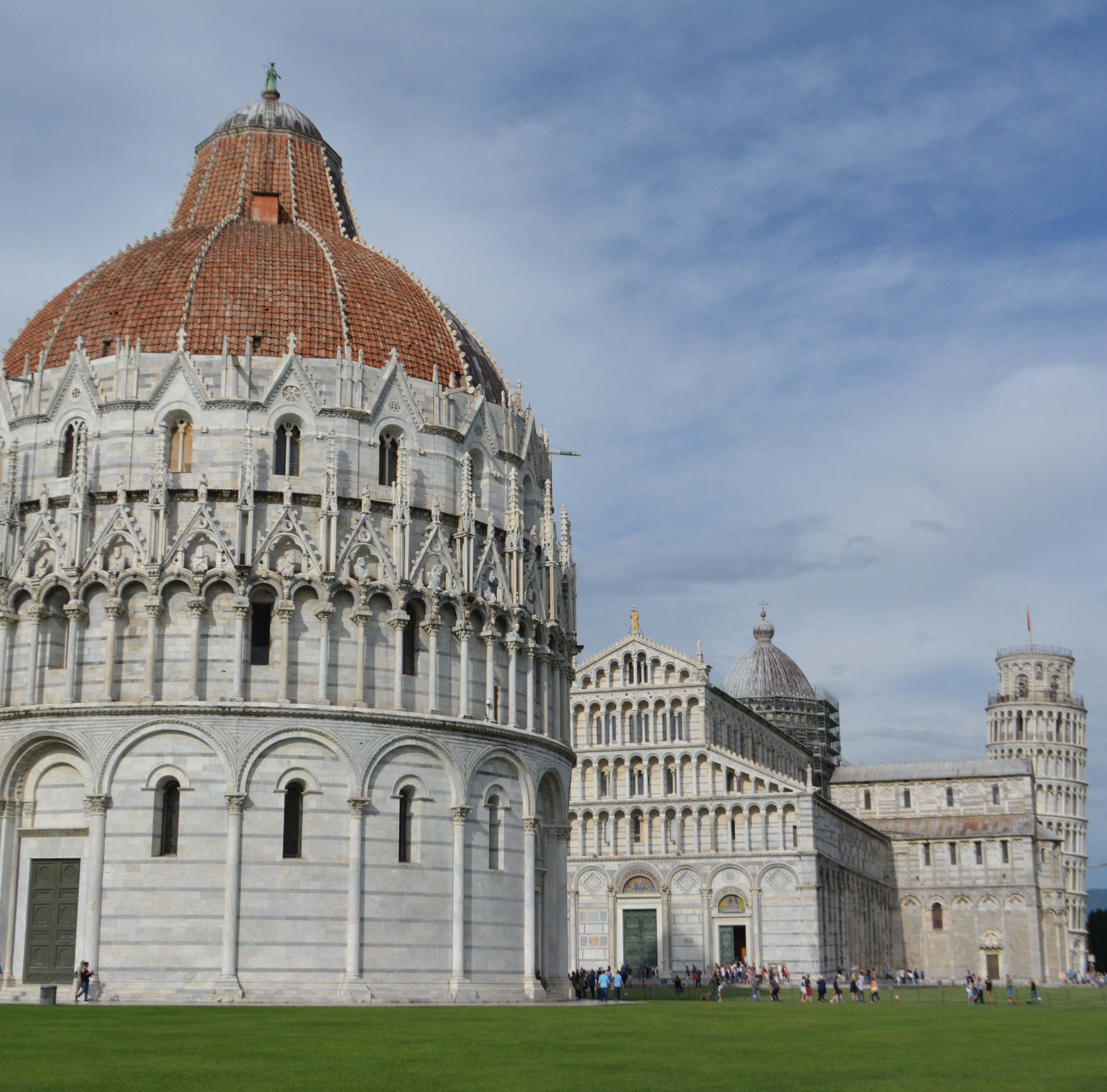 Last stop of the tour…Pisa more exactly Piazza dei Miracoli (Square of Miracles) the complex is a group of monument that includes : The Cathedral of Pisa, the baptistry, The Bell Tower (Leaning Tower) and the monumental cemetery. Off course, the Leaning Tower takes all the credits at this location, very particular angulated 4 degrees that fluctuate within the years…Lot had being said about the reason of leaning like bad foundation, there is also being big efforts to keep the tower up, point is the tower have being surviving even strong earthquakes in the area, millions of tourist per year and yeah is fun to get pics taken here…