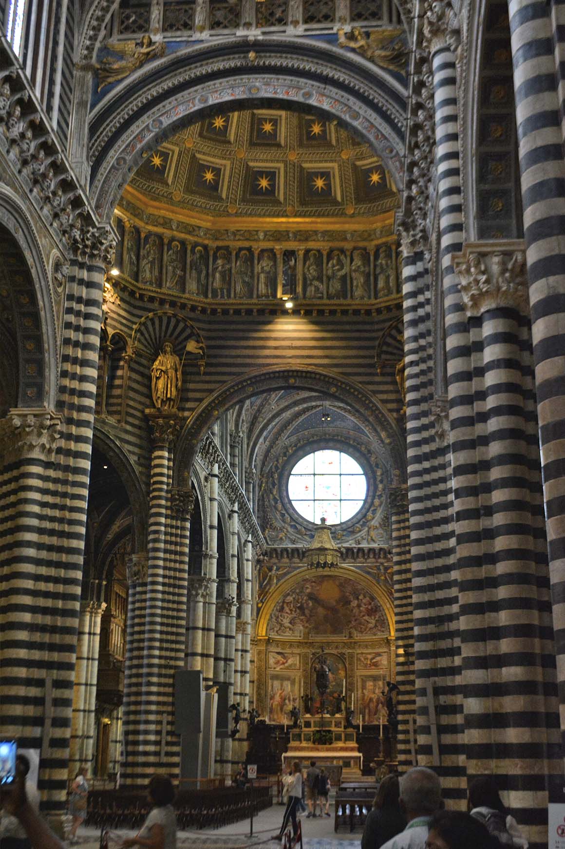 A little more deep into Siena we found another jewel from Medieval time, The Cathedral of Santa Maria of Assunta. It is a master piece of art. From the impressive scene mosaics in the floor (the largest mosaic floor ever made) to the Piccolomini Library frescoes, the stained glass and sculptures. It is like a worldwide treasure, major artists put their hands here including: Nicola Pisano, Donatello, Michaelangelo, Gian Lorenzo Bernini among others…here some pics of this unbelievable place (we were lucky to see uncovered floorings which only happens a couple of weeks per year)