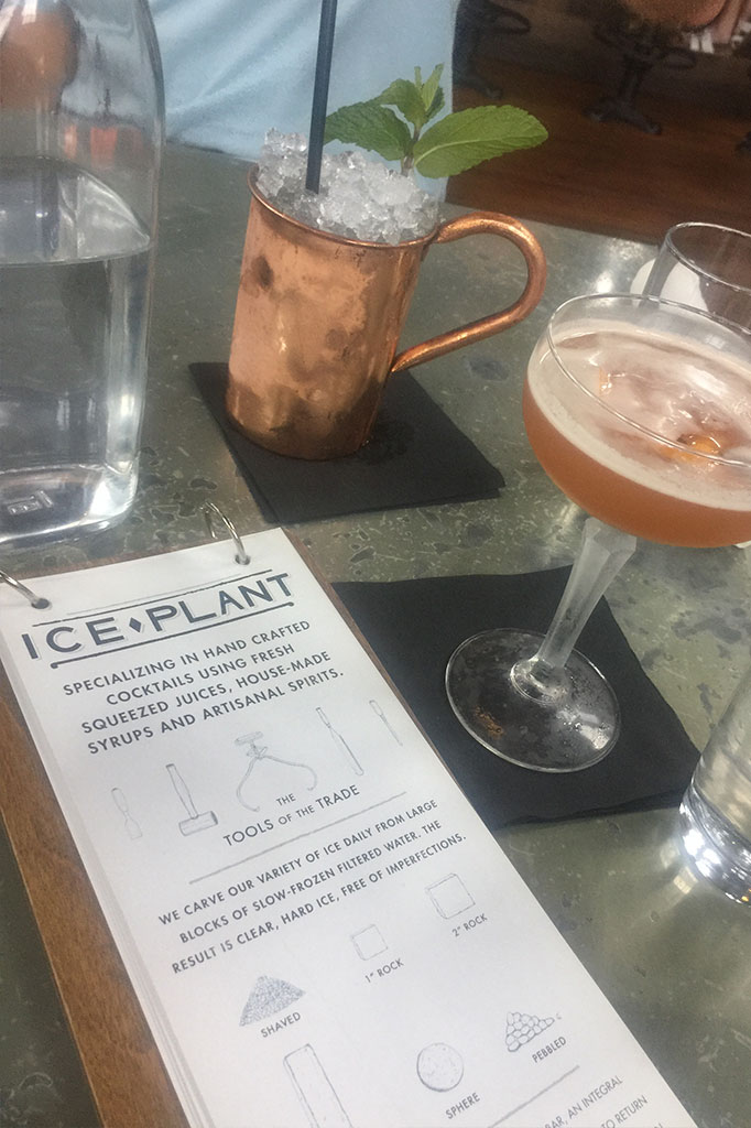 The Ice Plant is a vintage bar where you can find a selection of local ingredients and flavors which transform into delicious mix of cocktails and small bites. At Ice Plant, you can literally live the experience of going back in time, the building still features the original bridge crane on rails overhead the bar. The crane was used to pick up huge blocks of ice to then be broken down and sold to local customers and the shrimp boats. The place was restored to bring you the feeling of walking into an old factory. The cocktails features different ice shapes: shaved, rocks, long rocks, and spheres.